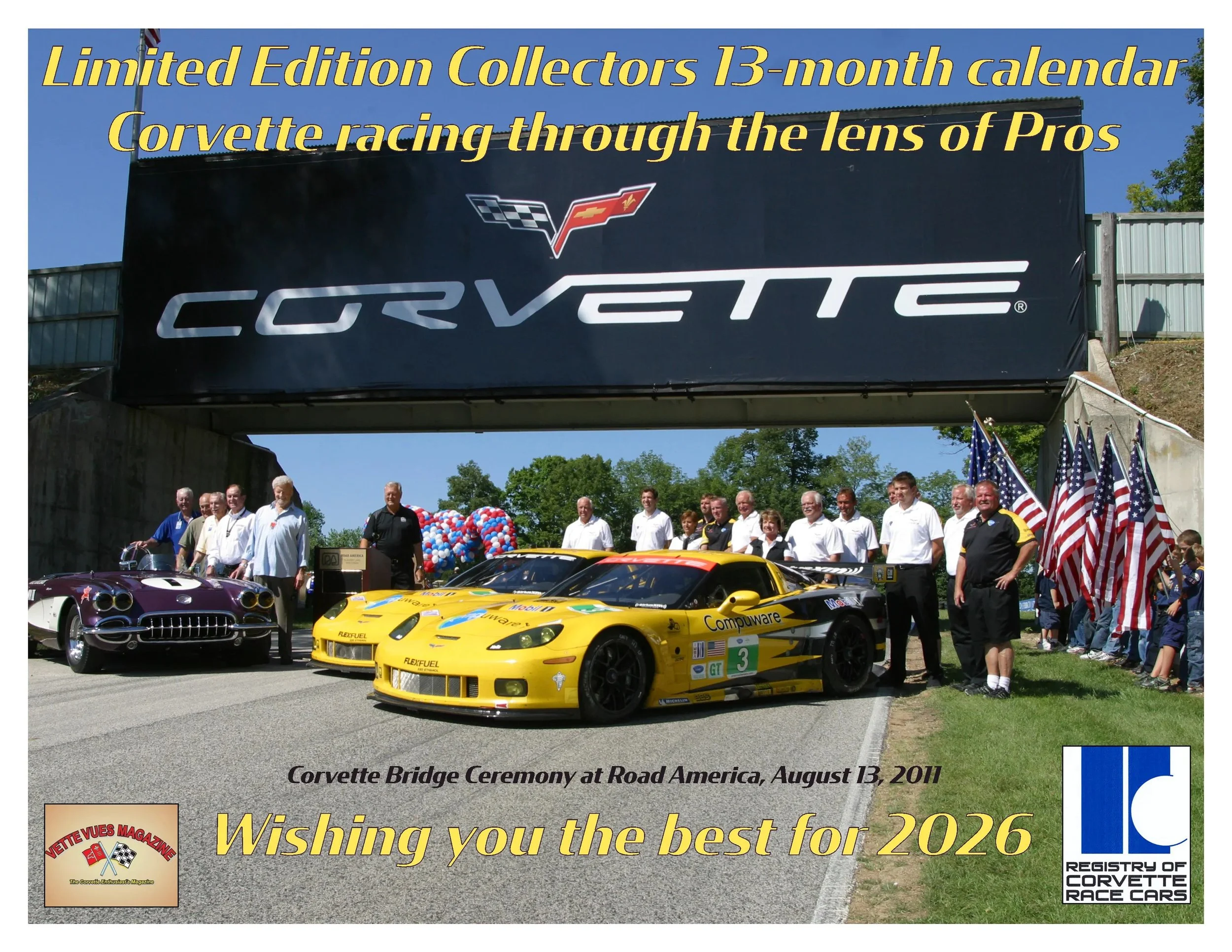 It is a collectible work of art, curated with photos by pros.  The 13-month 2026 edition features the Z06 GT3.R at Daytona, Sebring and Le Mans plus C1 thru C7 Corvettes in vintage and SCCA racing.