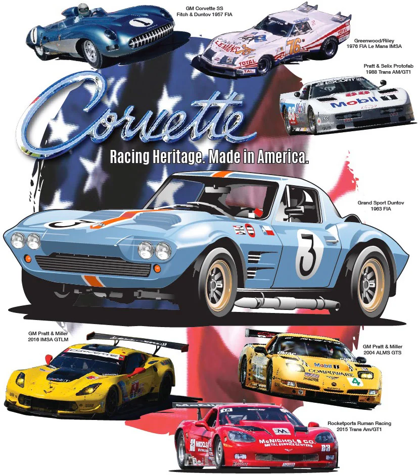 Exclusive new design Corvette Racing Heritage, Made in America. Show your colors. Order here