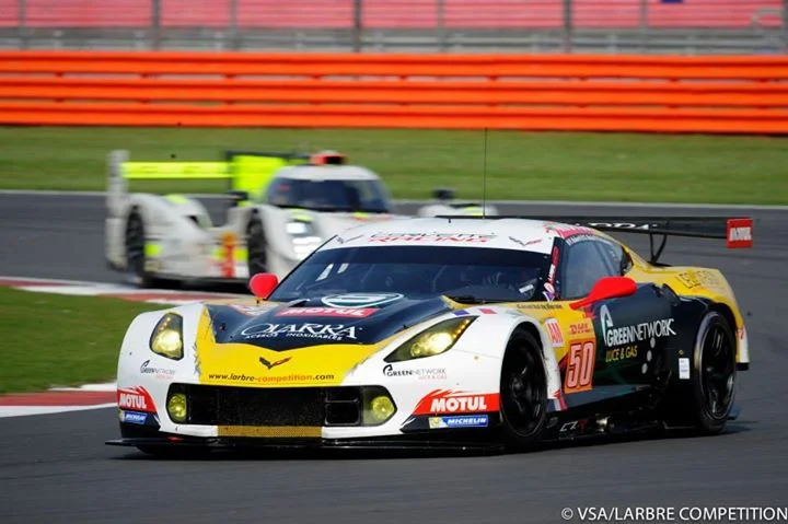 Team Larbre # 50 C7.R 002 made its debut in the World Endurance Challenge series 6 hour race at Silverstone UK. It finished last ( 7h) in class, 26th overall. This C7.R Corvette race car, chassis 002 was acquired from Pratt & Miller in early March and quickly modified to WEC GTLM Am specs. The car was re-built after sustaining damage from a rare off-course incident during practice at VIR in late August 2014 in the hands of Jan Magnussen.