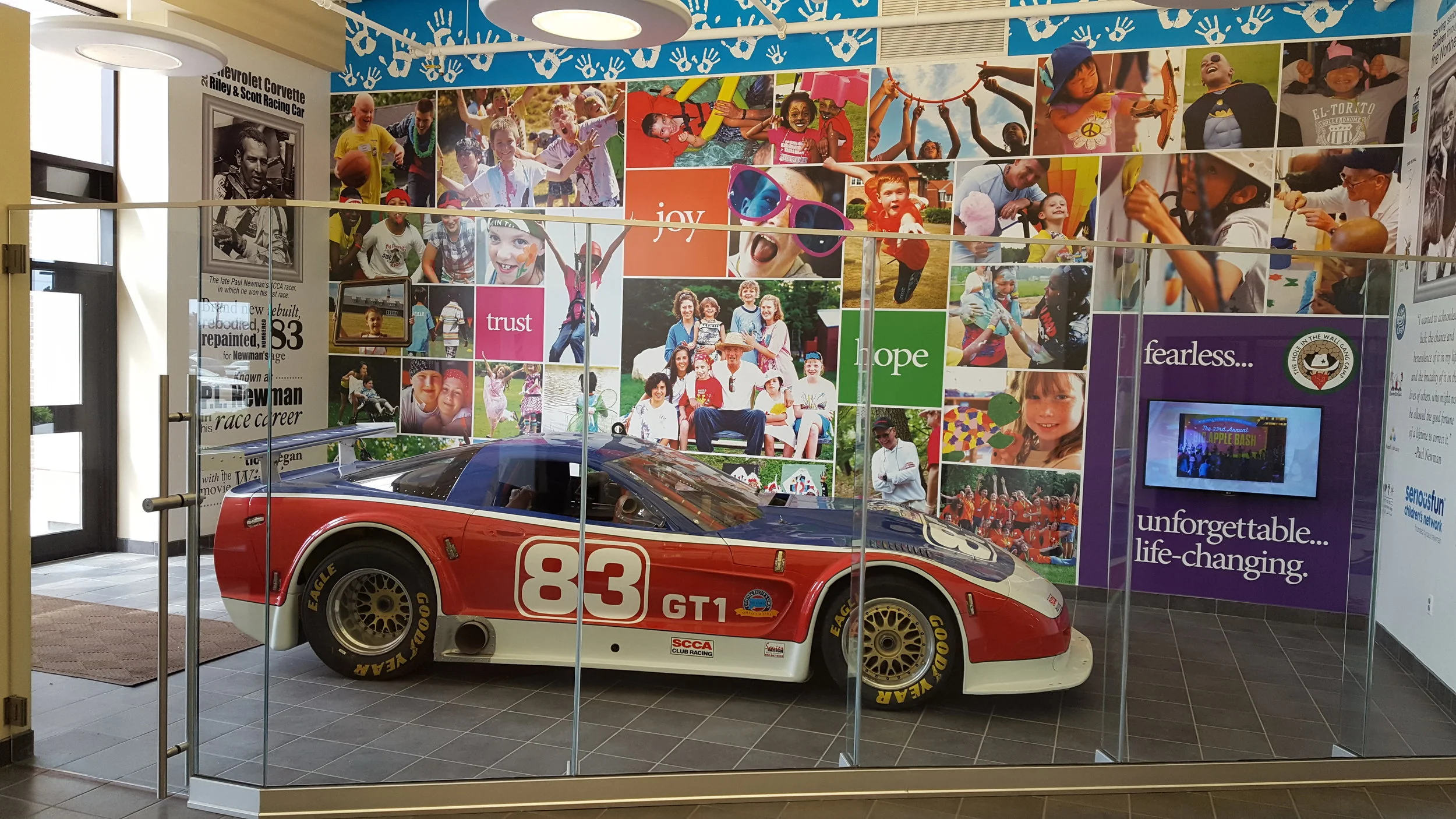 Side note: The Corvette Boris raced replicates the original # 88 Tommy Bahama that Butch Leitzinger drove for Tom Gloy’s Trans Am team. Famous actor turned racer Paul Newman (PLN) later bought the original and had it repainted to resemble the Datsuns PLN raced in his heyday for team owner Bob Sharp. The original Huffaker Corvette, re-numbered # 83 for his age, served as PLN’s “last ride” before he died in 2008. It is now proudly displayed in Rochester NY at the plant of LiDestri foods, a major supplier to Newman’s Own line of condiments. All profits are donated to Paul’s “Hole in the Wall Gang” charity.