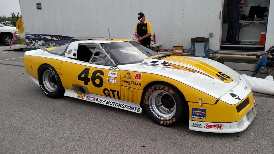 Alan Sevadjian, President of Duntov Motors just restored and plans to run this unusual C3/C4 SCCA GT1 Corvette that he raced earlier in the 1980s. The car has C3 suspension and chassis. According to Alan this latest C4 body was supplied by Gary Pratt (of Pratt & Miller fame) back when he had a company called Protofab that race fans may recall.
