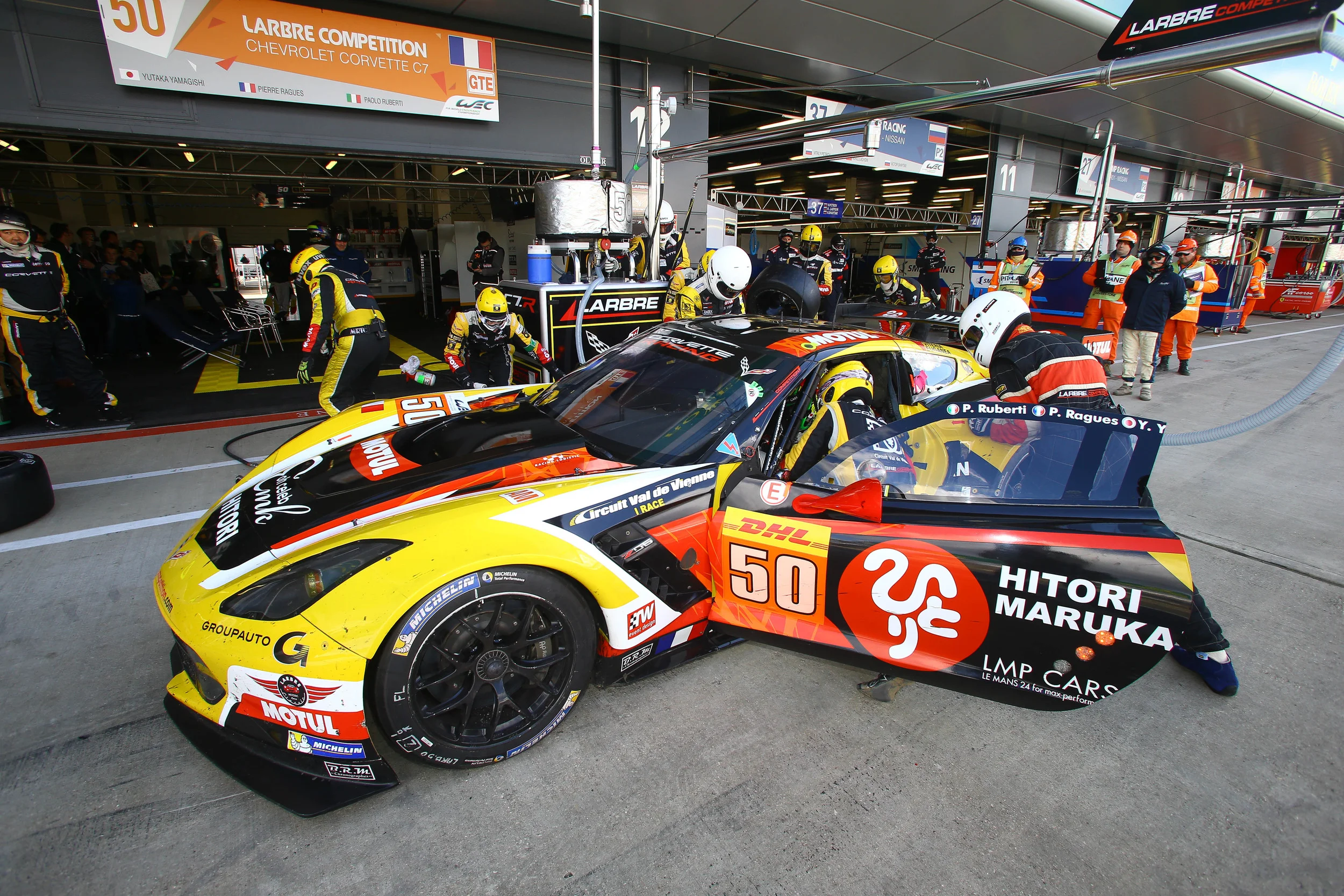 The # 50 Corvette C7.R, chassis 002 built by Pratt & Miller to race in 2014 and raced by Larbre last year ran strongly for the entire race.
