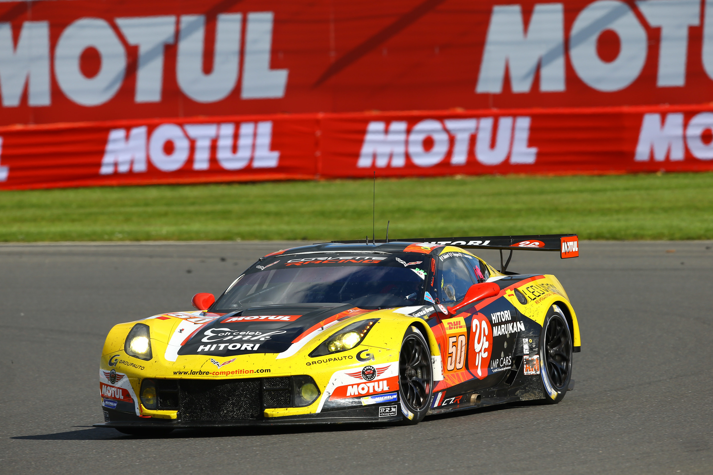 The # 50 Larbre Corvette is pitted against supercars like the # 83 Ferrari F458, the # 98 Aston Martin Vantage V8 and three (3) Porsche 911 RSR in the LMGTE Am class for gentlemen drivers.