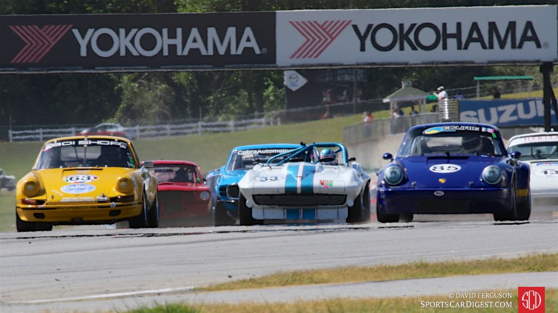 # 33 Mike Donohue in his state-of-the art C2 Corvette led a huge field of Porsches and Mustangs to take 2nd in both Group 5 Sprint and Endurance races for SCCA production class sports cars.