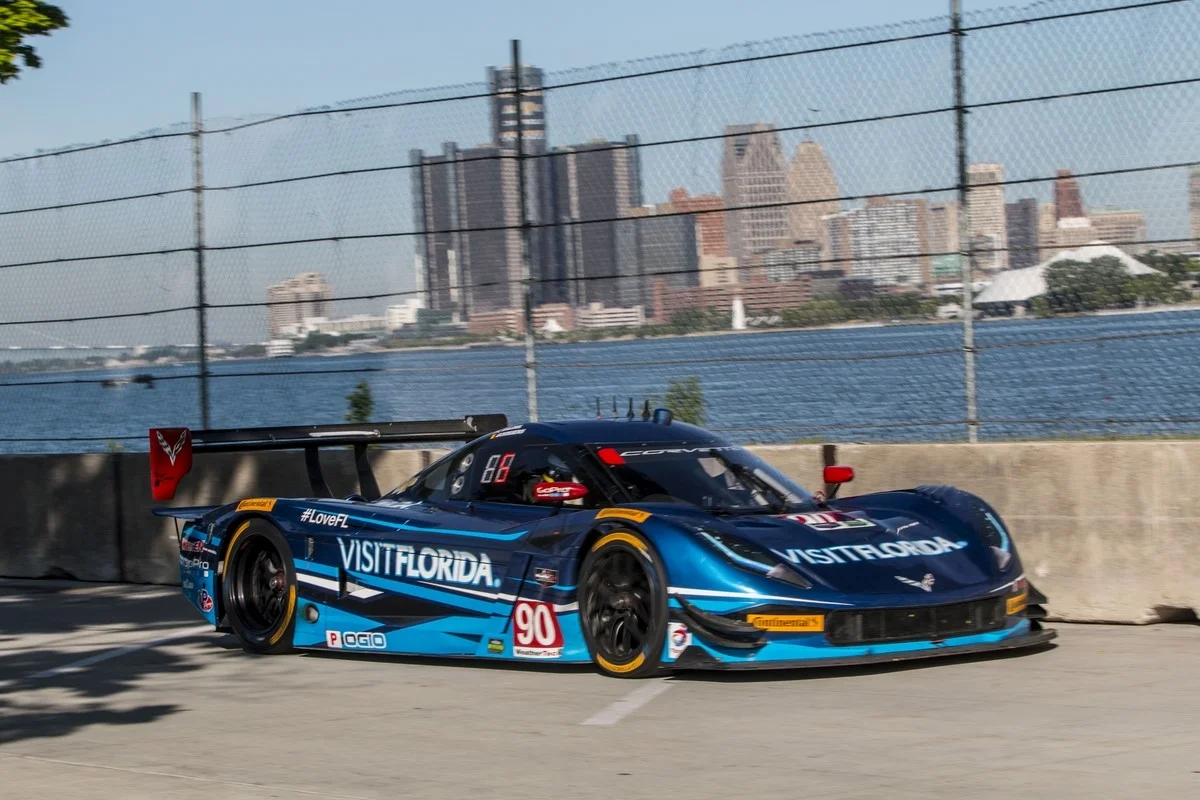On a mid-race re-start, Jordan Taylor slid past pole sitter # 5 Joao Barboza on the outside and held on to win the IMSA Chevrolet Sports Car Classic presented by the metro Detroit Cheve Dealers on the bumpy Belle Isle street circuit.