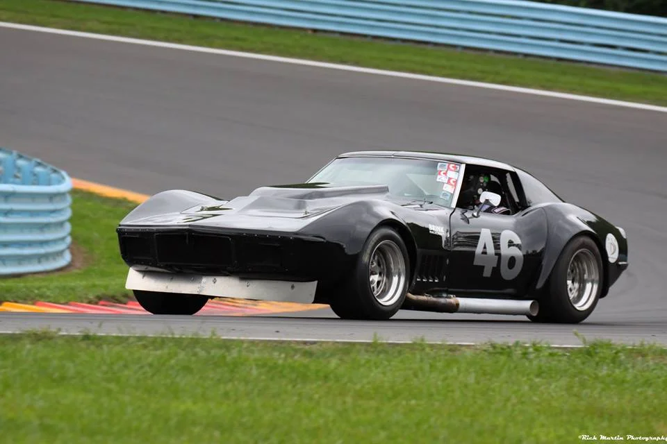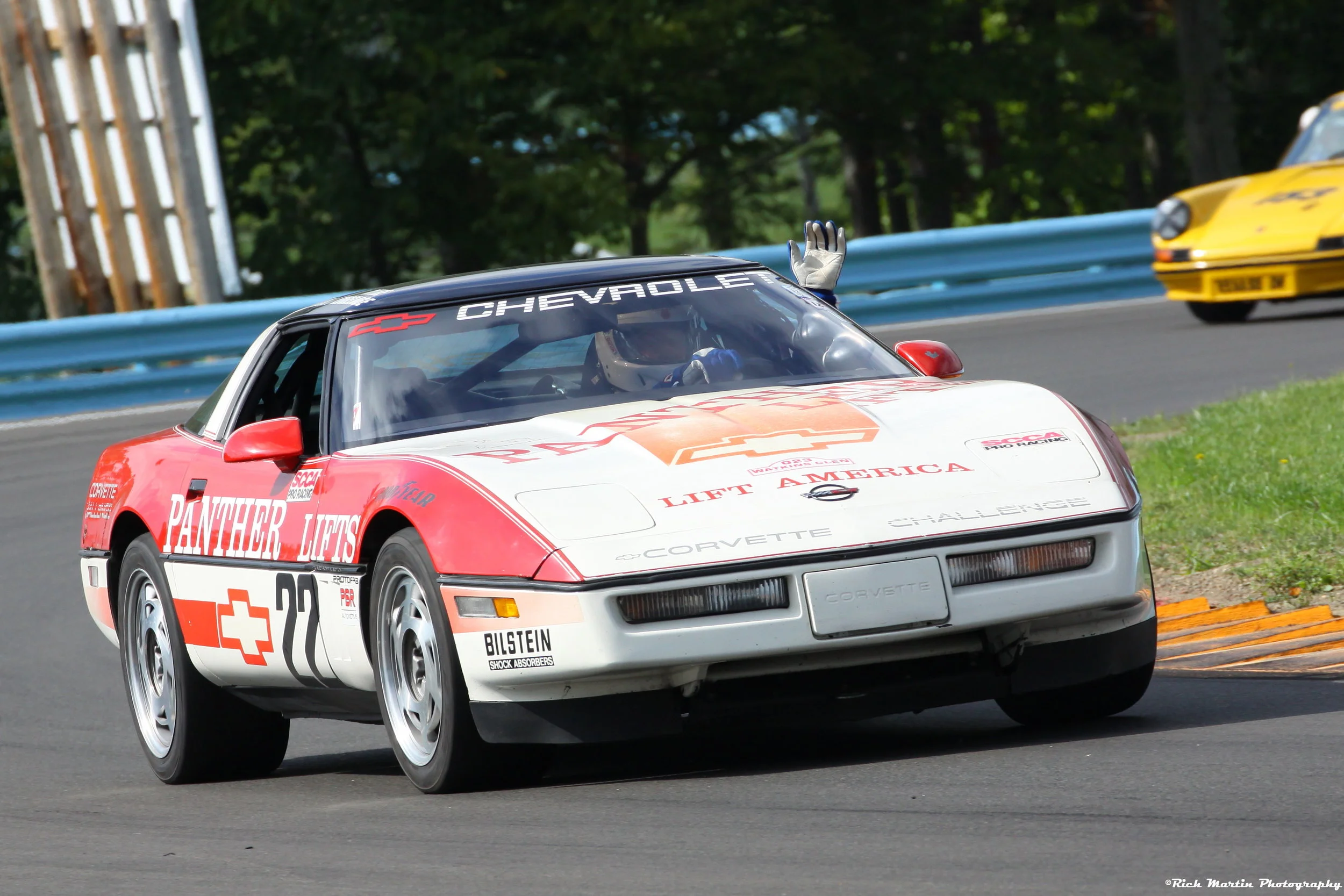 # 90 Jeff Bernatovich C4 1990 ex Irv Hoerr GT1 silhouette tube frame Corvette w/358 cu in NASCAR type engine won the group 10 feature race and the all Corvette Governor’s cup race.