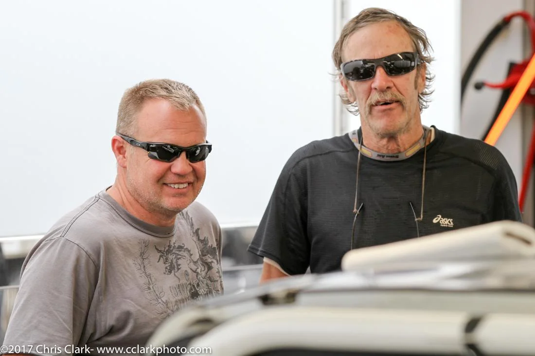 Allegretta (shown with Dick Danielson) fought back for 3rd after drive-thru penalty for passing 2 lapped cars under caution cost him 6 spots.