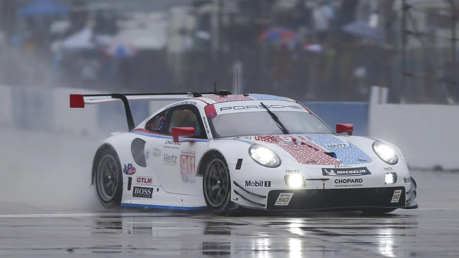 The # 911 Porsche of Nick Tandy inherited the lead followed by the # 66 Ford GT of Joey Hand after Ryan Briscoe spun the # 67 Ford GT in the wet.