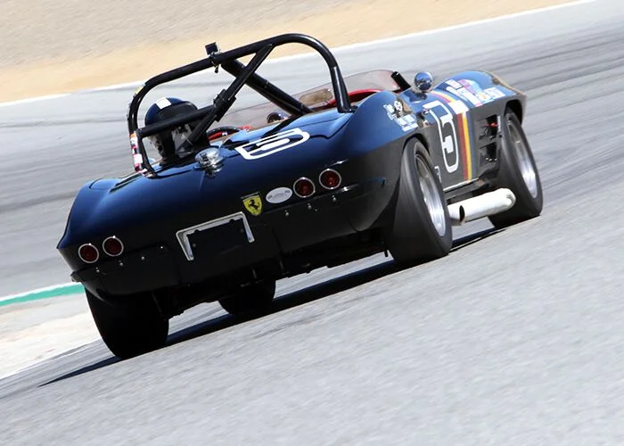 The # 75 of Tommy Steuer, prepped by Intrepid Racing, the # 16 of Jim Gallaugher prepped by J&L Fabricating and the # 5 of Jeff Abramson prepped by Randy Peterson were top 5 in Saturday Group 5A for larger displacement sports cars from 1963 - 1966.