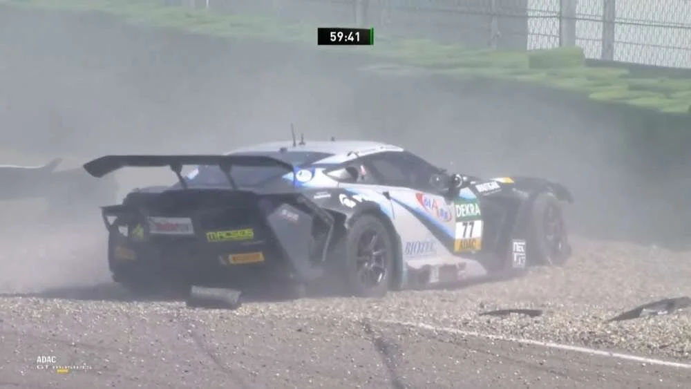Wrecks at Hockenheim nearly destroy the # 77 C7 GT3.R while # 13 Sven Barth wins Pirelli Trophy