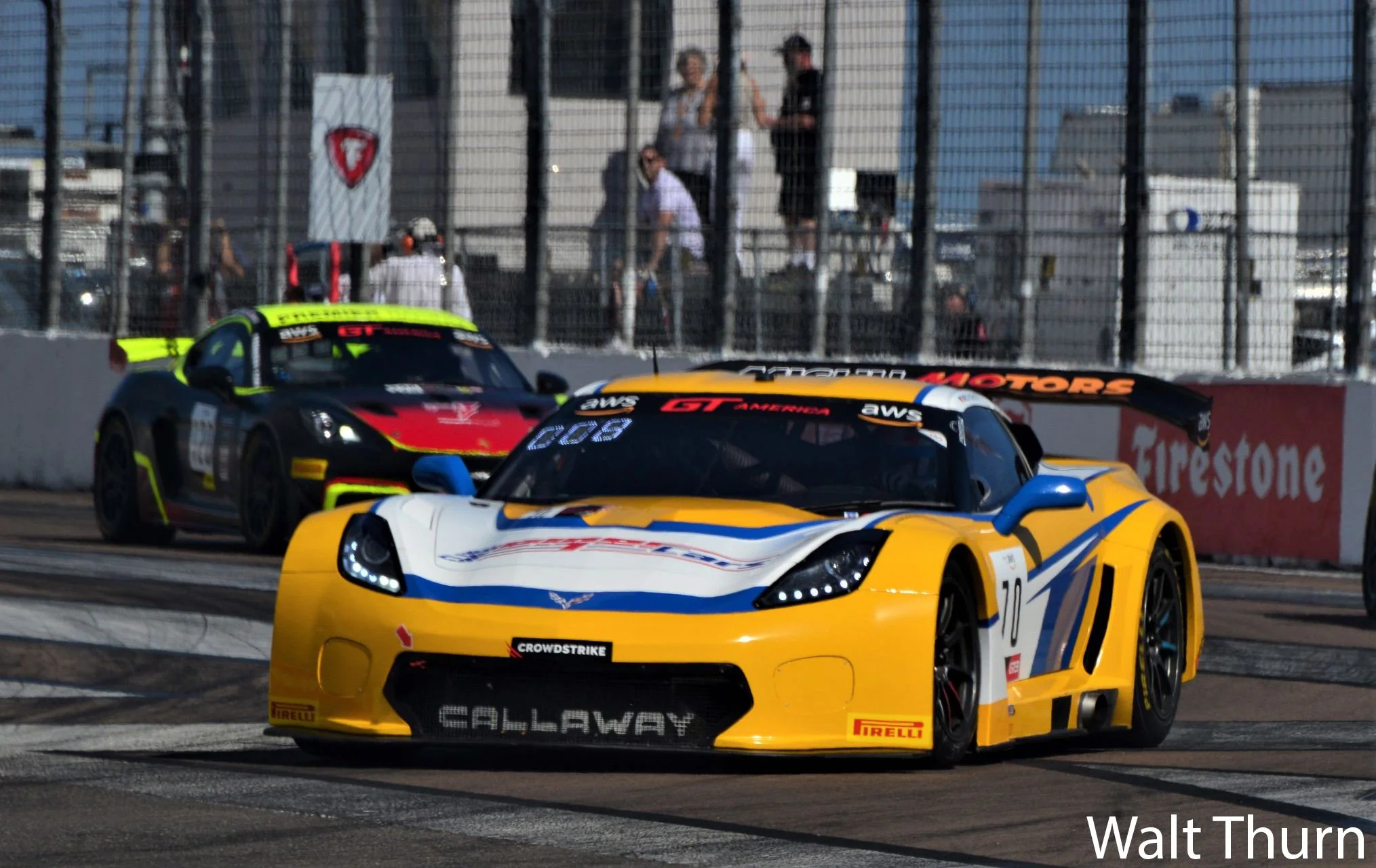 Callaway team principal Ernst Woehr and his crew from Leingarten Germany were on hand to help Mirco in the SRO GT America support race for the INDY CAR feature on the street/airport circuit at St Pete.