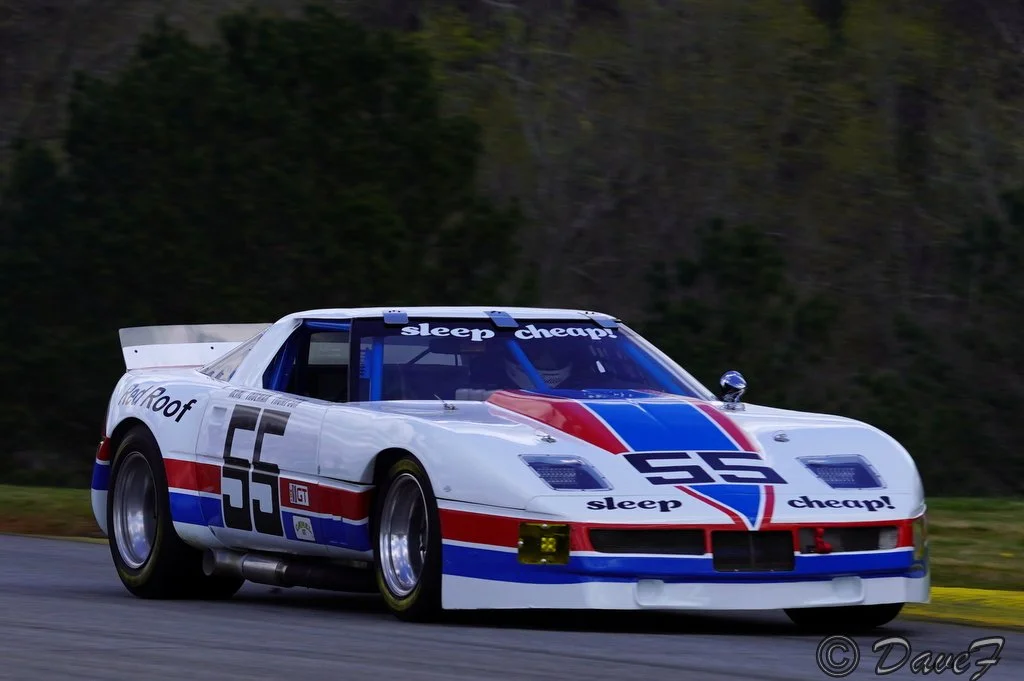 Kent Hussey, Atlanta-based Collector/Racer brought # 55, a C4 1984 IMSA Dillon tube frame chassis cloaked in a rare silhouette wide-body. It was the last Corvette built and raced by the late Dave Heinz. Sponsored and co-driven by the late Jim Truman from Columbus OH, founder of budget hotel chain Red Roof Inns. Refurbished by Ray Evernham in 2019. Corvette racing legend Johnny O’Connell was behind the wheel in SVRA Group 10.