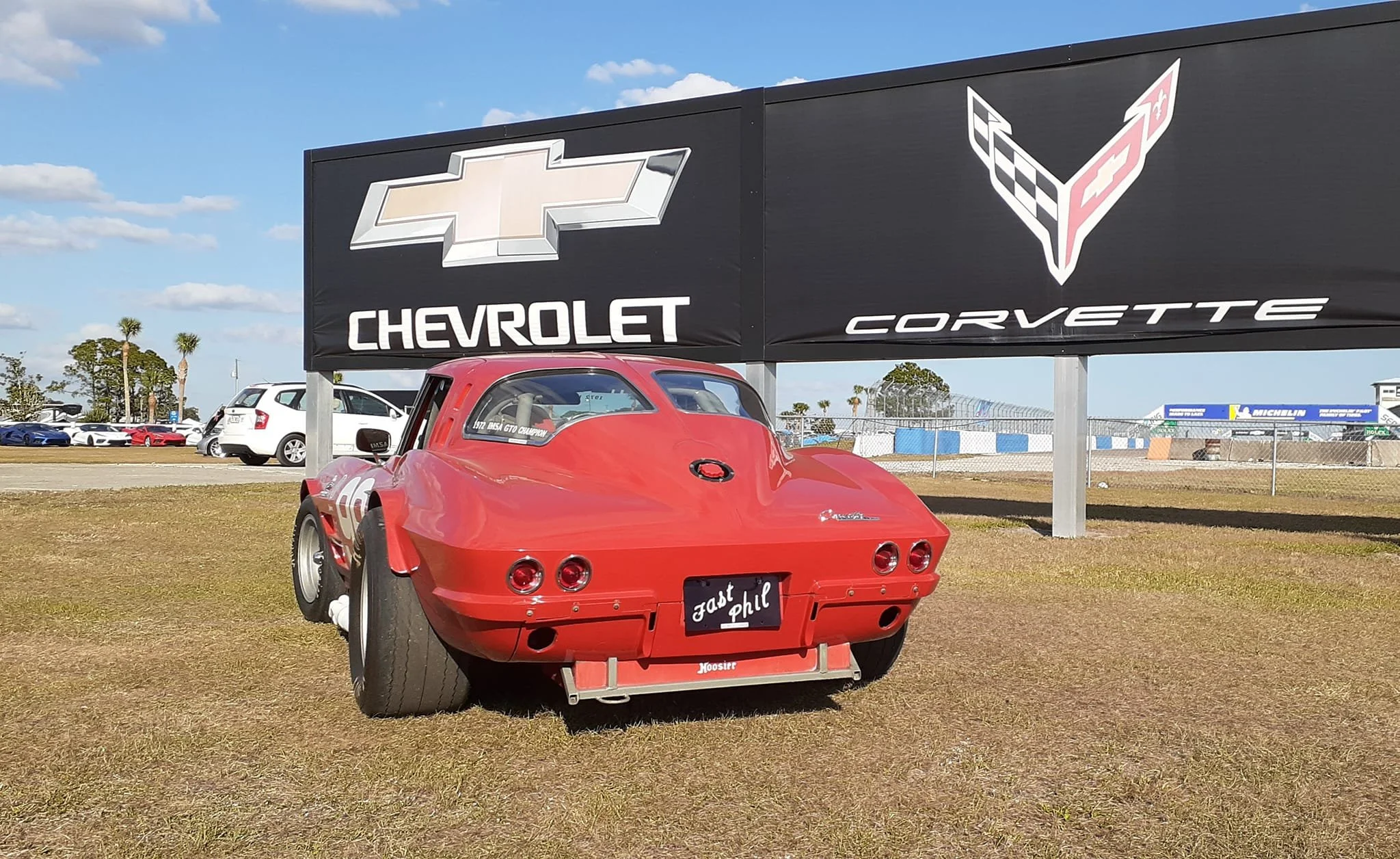 Corvette enthusiast/historian/founder of the “no rules” Corvette Club Mike Waal and wife Linda journeyed from the Maryland Eastern Shore in their C6 Corvette. The corral proved a nice refuge for them and a strong turnout of fans.