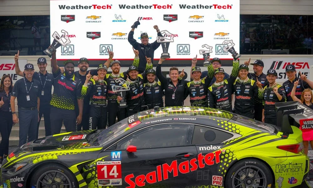 Jack Hawksworth and Ben Barnicoat led 48 of 61 laps in the first win for the # 14 Vasser Sullivan Lexus RCF GT3; closely followed by Matt Campbell & Mathieu Jaminet in the # 9 Pfaff Motorsports Porsche 911 GT3R.