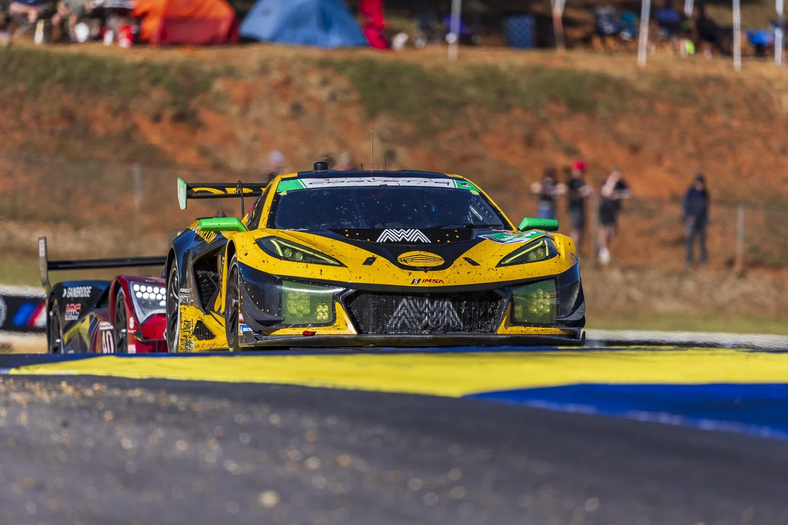 Starting from 2nd and 3rd on Saturday Oct 12, the Pratt & Miller team had high hopes at Road Atlanta, where winning this 10-hour endurance race has proved elusive. Their # 3 Z06 GT3.R had already survived an incident during Thursday night practice to repair heavy damage to the right rear with welding going on into Friday morning.