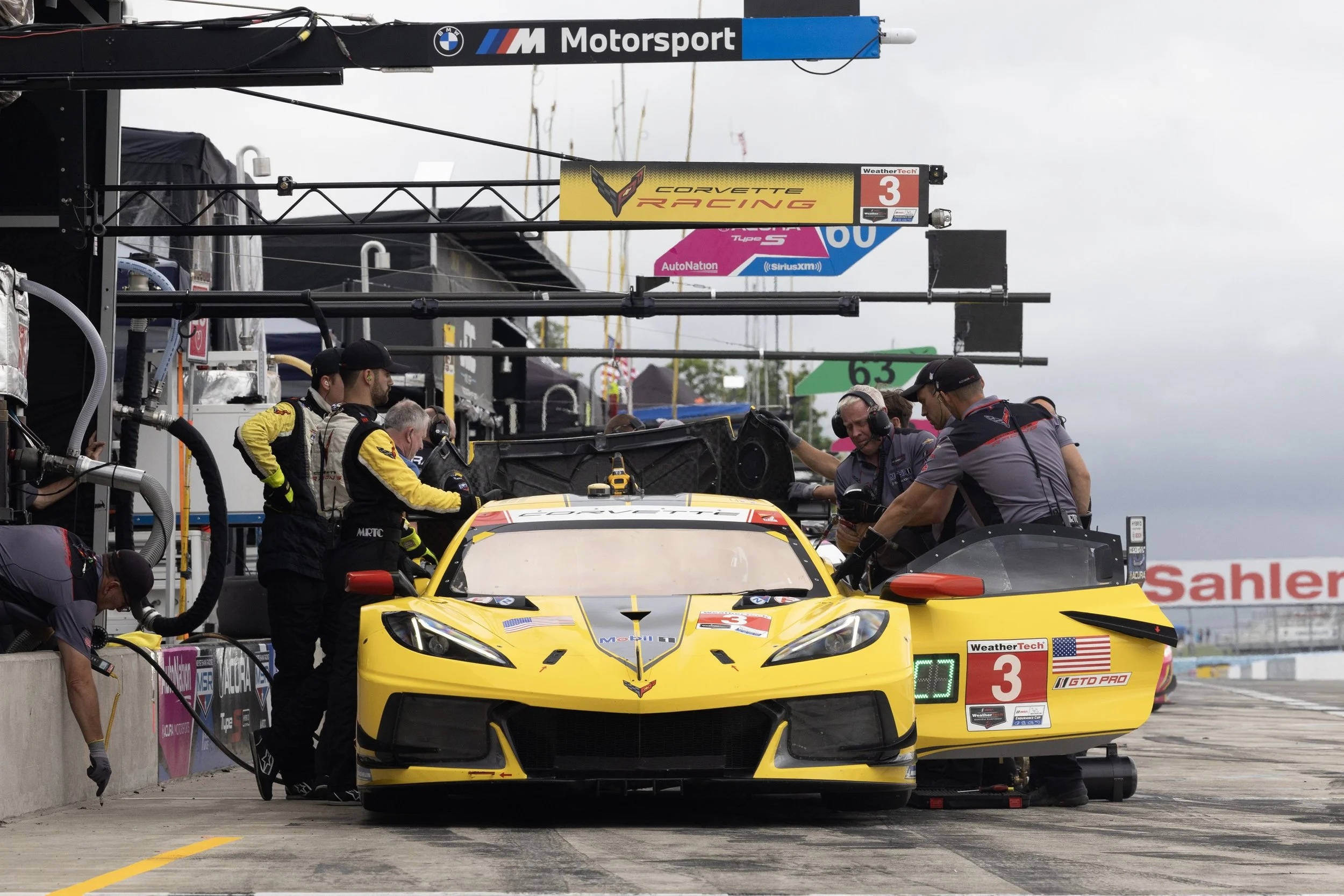 The Pratt & Miller crew intermittently changed dry & wet tires and handled re-fueling through a chaotic race that kept Sims and Antonio Garcia (ESP) in position to finish 3rd behind winner # 23 Aston Martin GT3 Evo of Alex Riberas/Ross Gunn & runner-up # 9 McLaren 720S GT3 Evo of Oliver Jarvis/Marvin Kirchhofer.