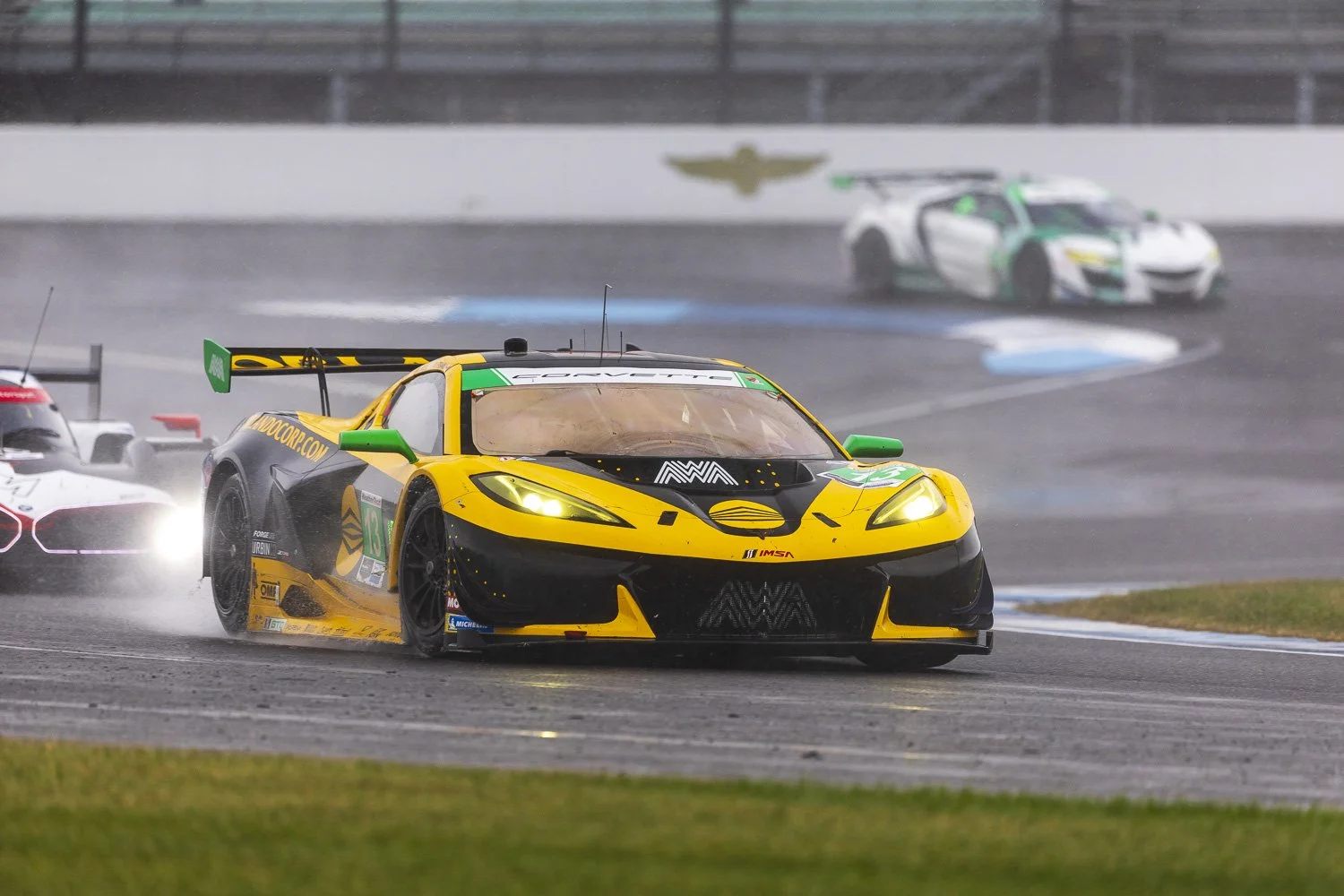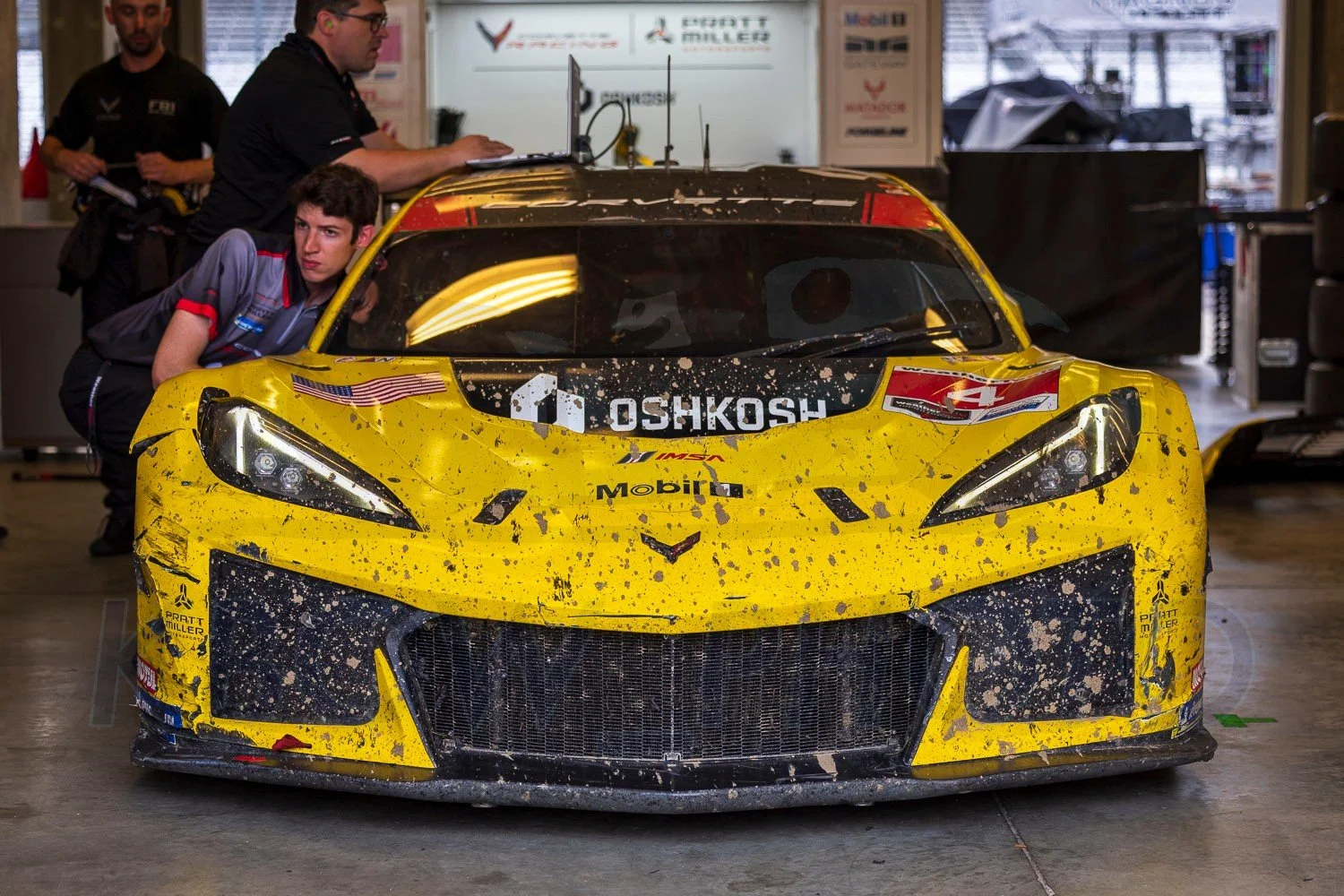 The Pratt & Miller crew did its usual good job swapping rain tires to slicks while the engineers managed fuel strategy on the go.