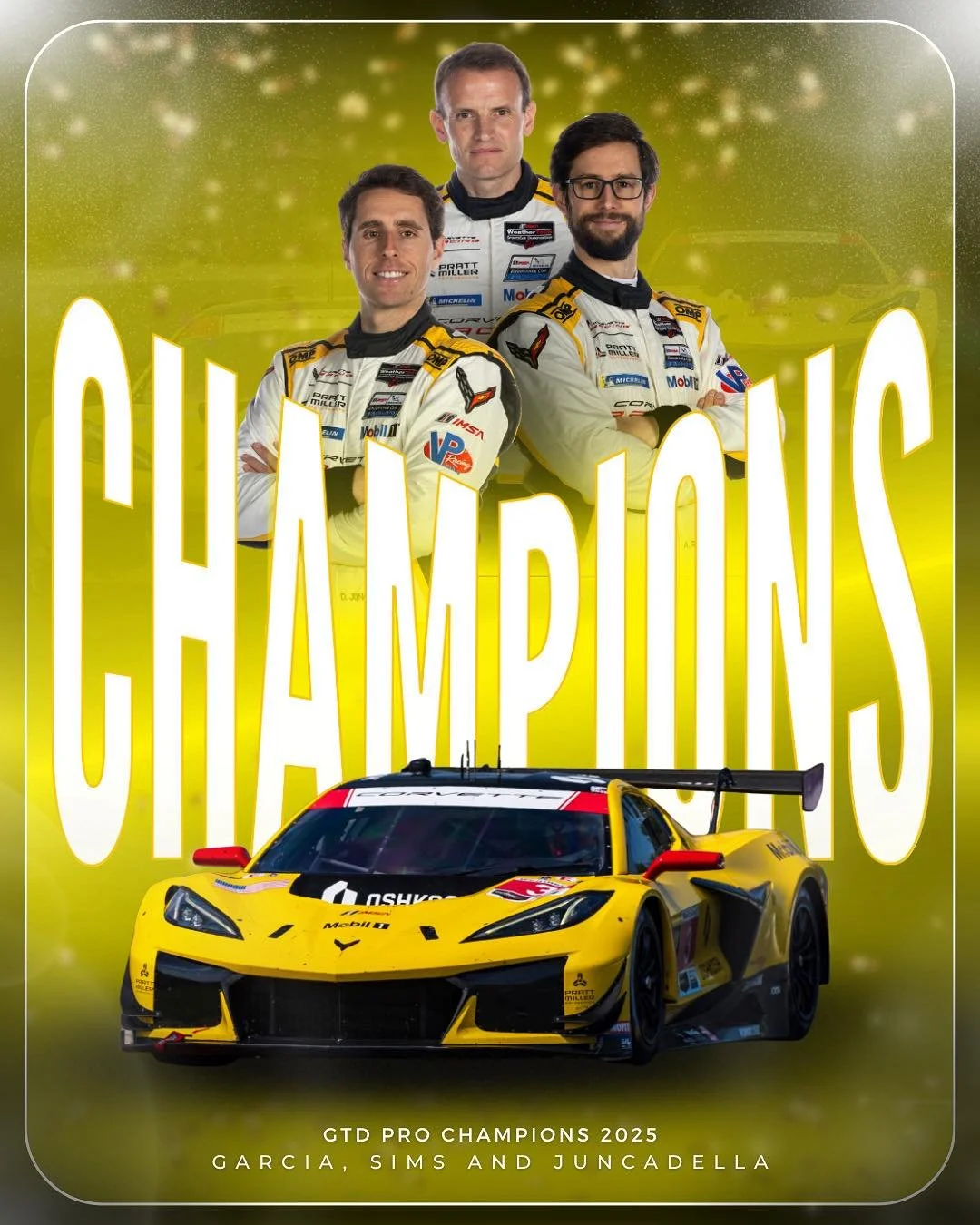 Antonio Garcia, Alexander Sims and Dany Juncadella’s third-place finish in the # 3 Pratt & Miller Z06 GT3.R Corvette topped the # 81 Dragon Speed Ferrari 296 GT3 piloted by Albert Costa, Davide Rigon and Giacomo Altoe to win the 2025 IMSA GTD PRO Drivers and Manufacturers Championships.